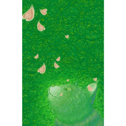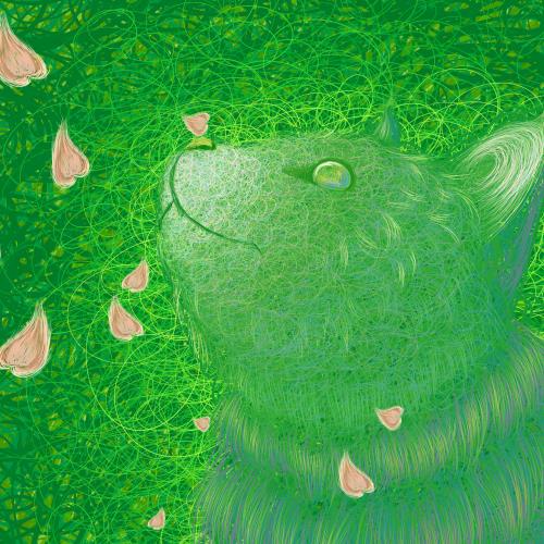 由线条组成的绿色背景,代表春意盎然,一只同色系小猫咪抬头仰望天上飘下来的花瓣。立即购买